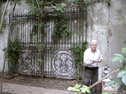 Matthias Münz vor den beiden Rosenstöcken