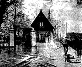 Das Gärtnerhaus vom Haupttor aus gesehen bei Hochwasser im Jahr 1926